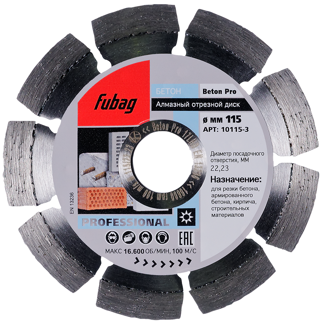 Алмазные отрезные диски по бетону используются для работы со станками, бензорезом, а также для влажной и сухой резки. Особенность таких приспособлений – непрерывная режущая кромка. При выборе подходящей модели нужно учитывать несколько нюансов, например, диаметр и размер посадочного отверстия, а также массу. В целом алмазные диски по бетону – это относительно недорогие, универсальные инструменты, которые могут работать с особо твердыми материалами. Каждое изделие от FUBAG отличается высокой точностью, долговечностью, износостойкостью и отличной производительностью.